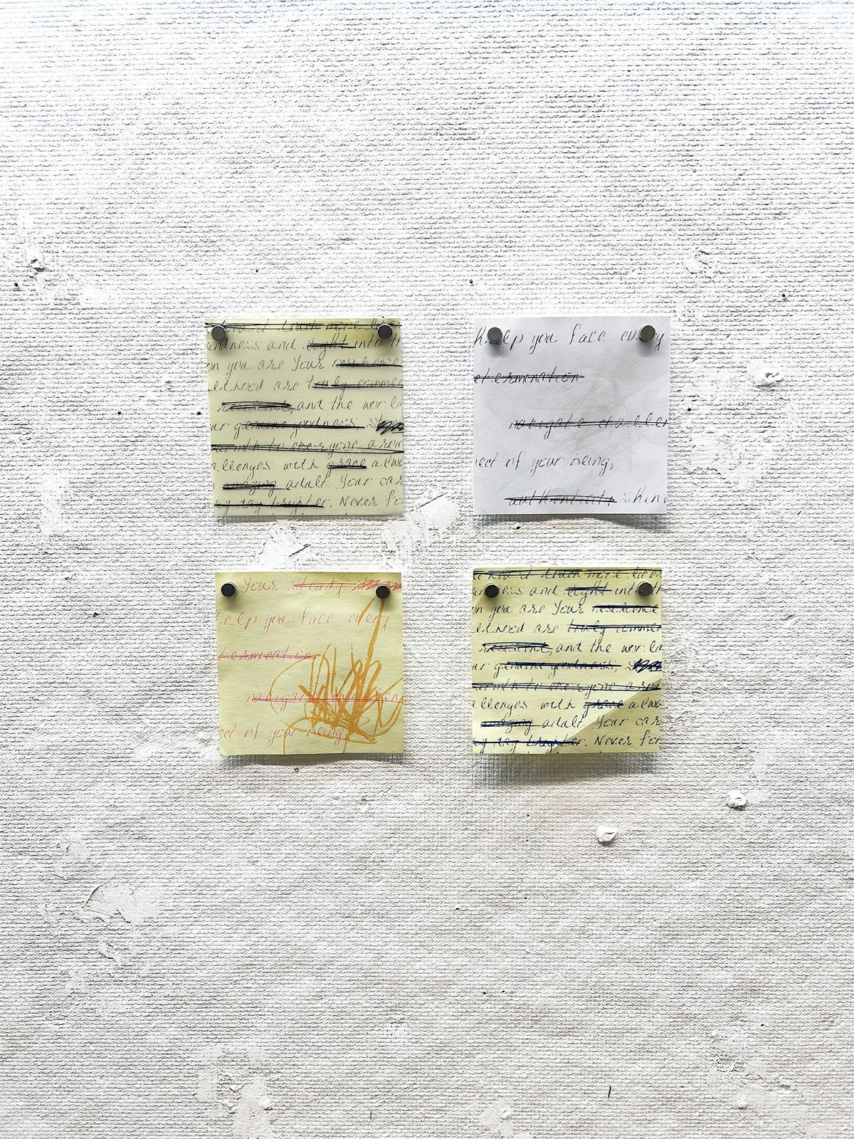1) Post-it screenprints by Nicole Banton currently on view at the Open Studio Proofs & Process Vitrines, located in the hallway outside the studio doors