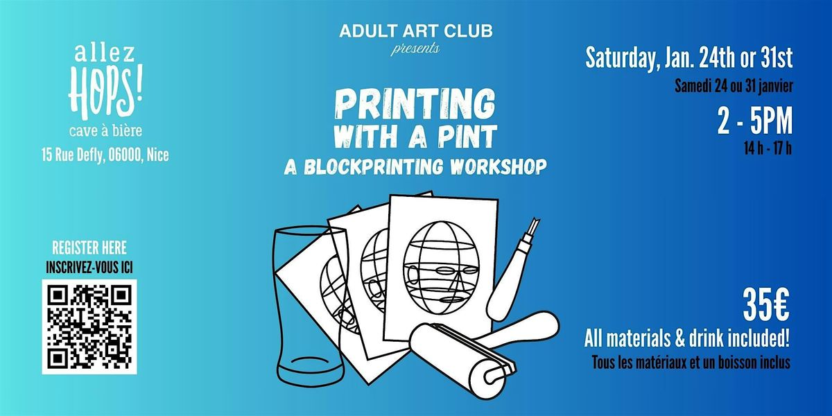 Join us for a hands-on introduction to blockprinting, paired with good drinks and in the welcoming atmosphere of