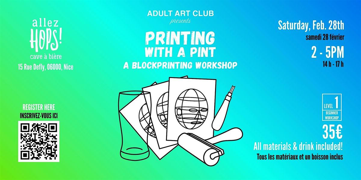 Join us for a hands-on introduction to blockprinting, paired with good drinks and in the welcoming atmosphere of
