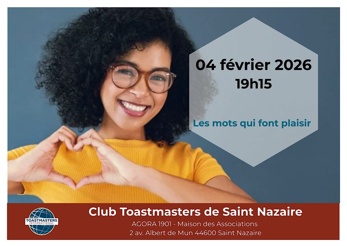 Préparez-vous à améliorer vos compétences en prise de parole en public lors de la prochaine réunion organisée par le Toastmasters Club Saint-Nazaire.