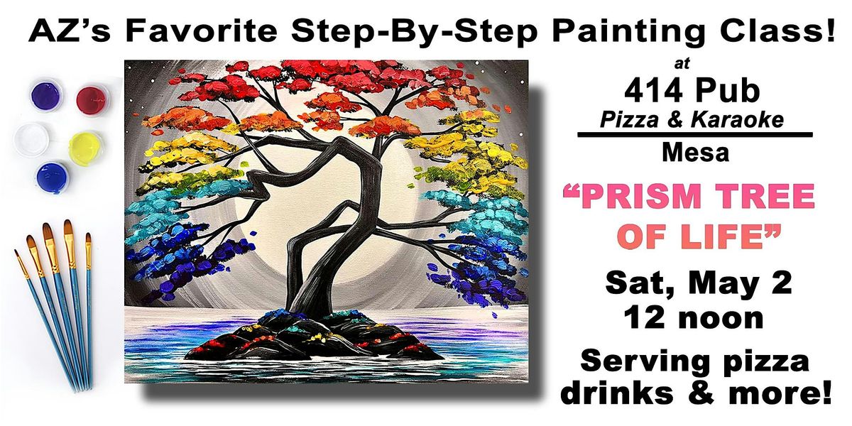 Let your color shine at our next paint class! Sign up at tiny.cc/prismtree and join us for an afternoon of step-by-step painting. Enjoy delicious drinks and food while you sing-along to your favorite songs as you are guided by local artist Ed Pollick to paint this beautiful painting! All attendees are entered in our free raffle. No experience is necessary!!**Tickets must be purchased in advance to limited seating.