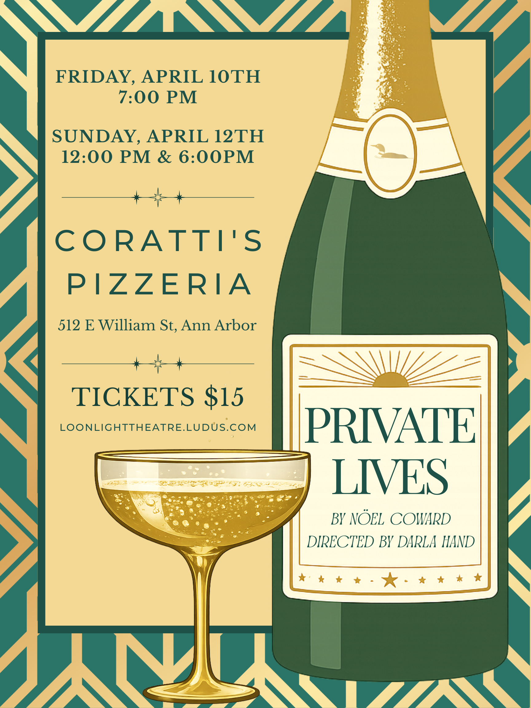 A contemporary staging of Private Lives by Noël Coward, presented in an intimate in-the-round setting at Coratti's Pizzeria on East William St. A comedy full of sharp wit, questionable romantic choices, and the kind of arguments that are only funny when they’re happening to someone else. Who doesn't love to snoop into other people's private lives?