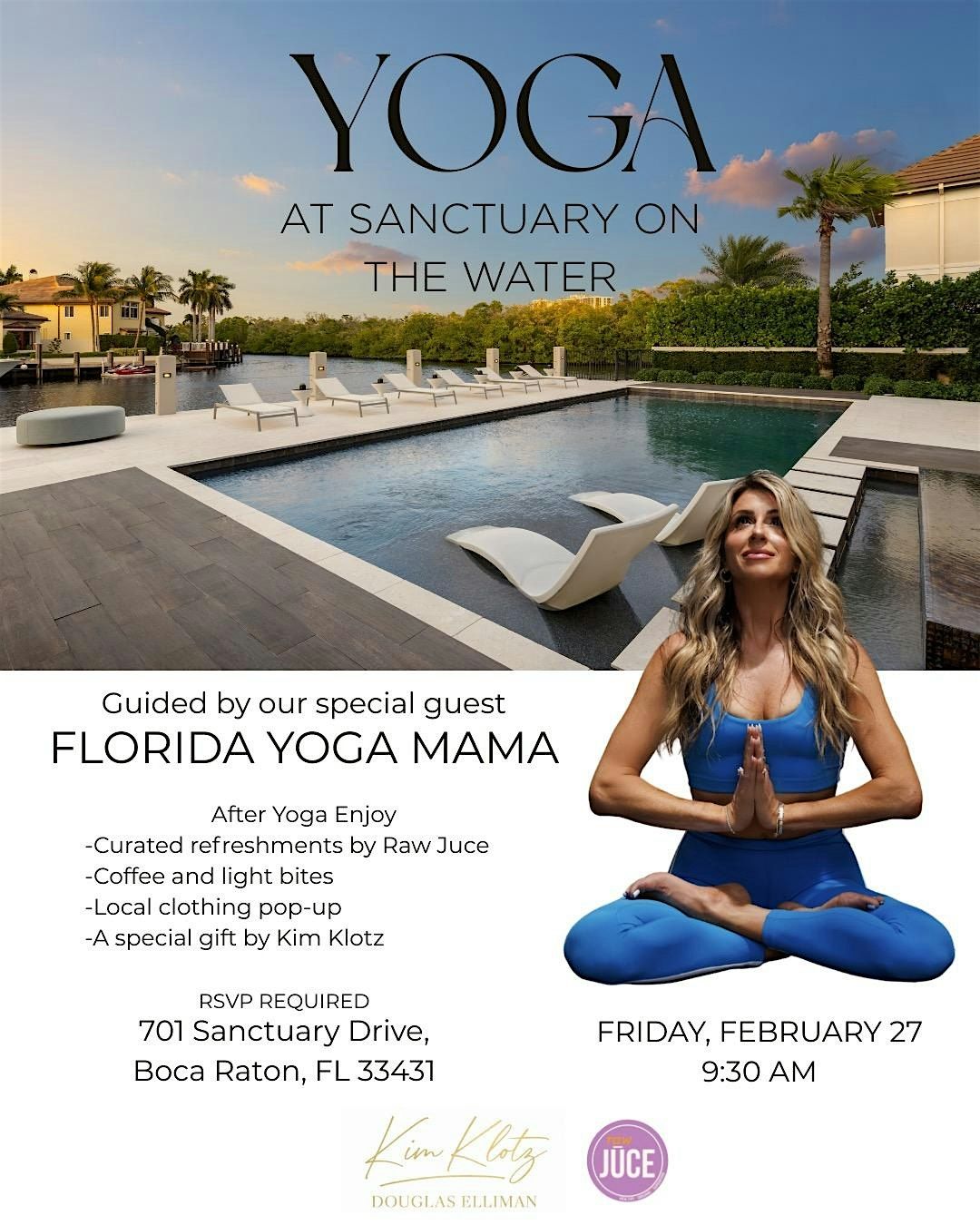 Join us at a breathtaking property for an all levels yoga class led by Brie Mazin followed by refreshments after.