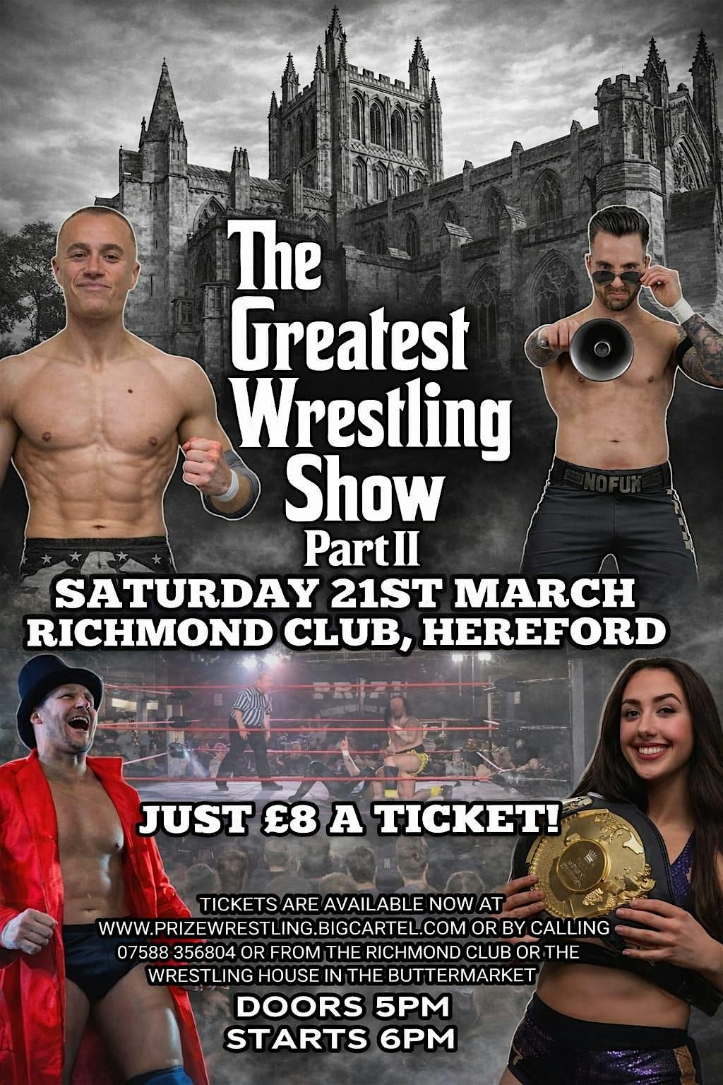 Get ready for an epic night with PRIZE WRESTLING bringing you the GREATEST WRESTLING SHOW PART II live and in person! Expect thrilling matches, jaw-dropping moves, and nonstop action. Don’t miss out on the excitement—come hang with fellow fans and watch the best wrestlers battle it out right before your eyes!