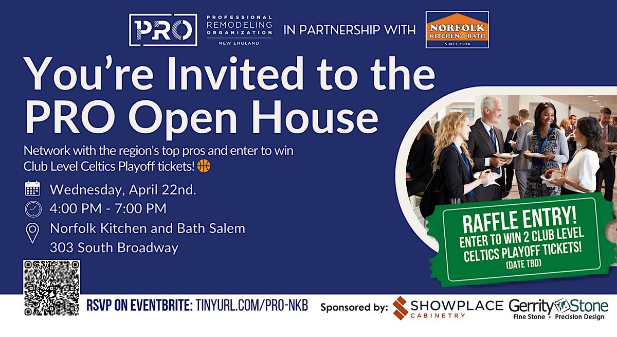 Join Norfolk Kitchen & Bath in Salem for an open house with PRO New England and connect with local contractors, industry partners, and professionals from across the region. As PRO New England grows its presence in southern New Hampshire, this event is a chance to make valuable connections, enjoy food and drinks, explore the showroom, and enter to win club level Celtics playoff tickets.