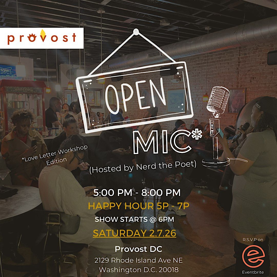 Welcome to Pro Voices Open Mic @ Provost DC! Join us for a night of amazing performances at Provost. Whether you're a seasoned performer or just looking to share your talent, this is the place to be. Come showcase your poetry, music, or comedy skills in front of a supportive audience. Don't miss this opportunity to express yourself and connect with fellow artists.