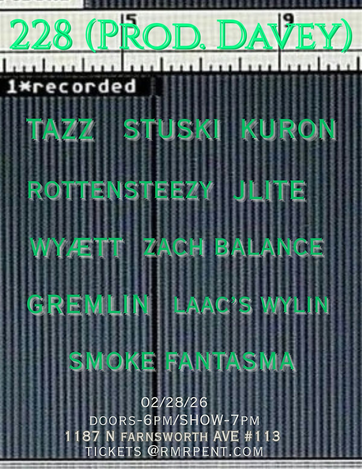 Join us at RMRP feb28 2026 for davey not davids first showcase! All artists on this line up actively record music with davey!