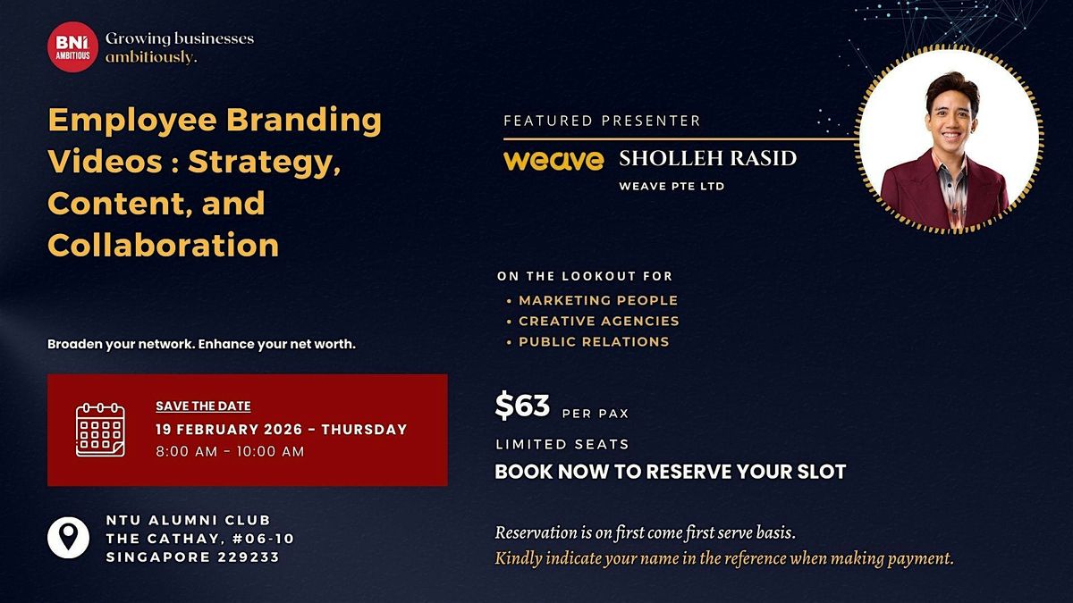 Step into the dynamic world of BNI Ambitious Singapore, member-focused business referral network where connections flourish! Forge enduring relationships with fellow business professionals who share your vision, while unlocking endless possibilities through referral marketing.