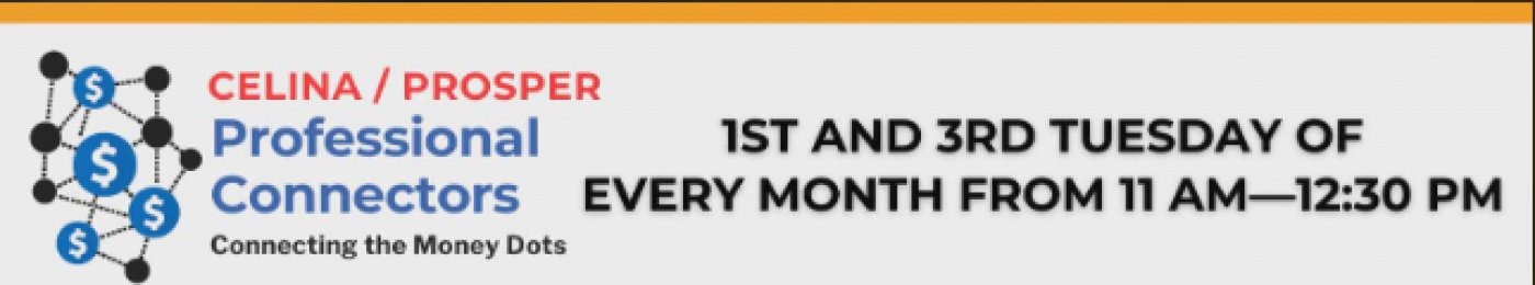 If you’re ready to take your networking to the next level, join us in Celina / Prosper and start connecting the money dots today.