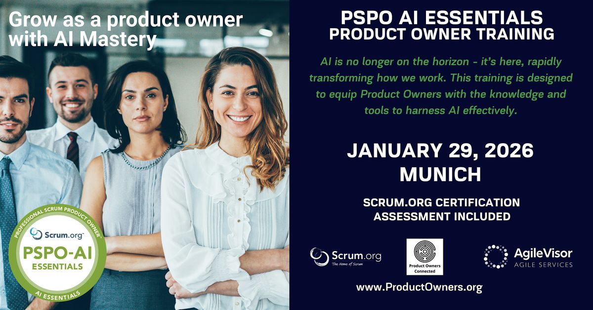 Professional Scrum Product Owner-AI Essentials (PSPO-AI Essentials) is an interactive, hands-on course designed to empower Product Owners, Product Managers, Business Analysts to understand, leverage, and apply Artificial Intelligence (AI) to support their job and teams. This course builds on the Professional Scrum Product Owner™ (PSPO) and Professional Scrum Product Owner™ - Advanced (PSPO-A) courses by exploring the application of AI within the various stances of a Product Owner.