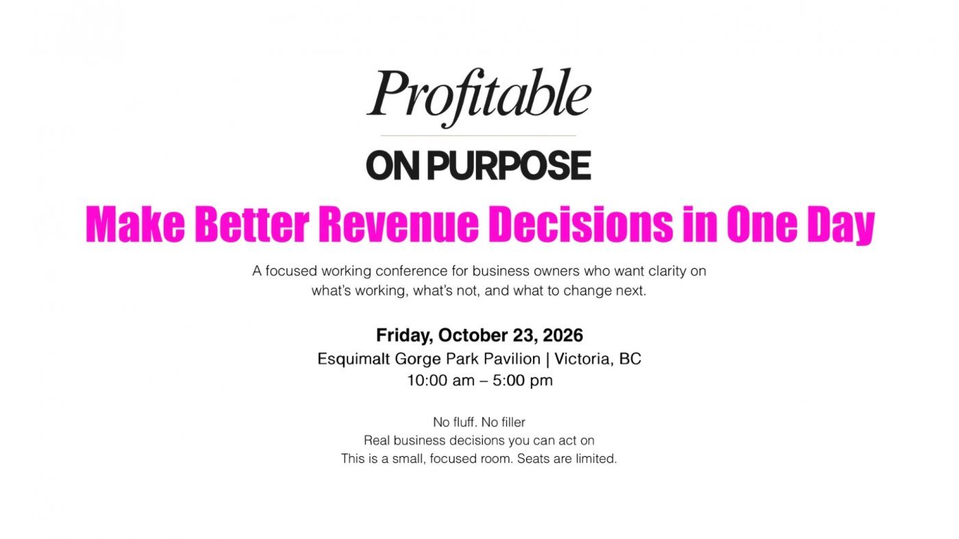 Profitable on Purpose is a one-day working conference for business owners who are done guessing and ready to make smarter revenue decisions.