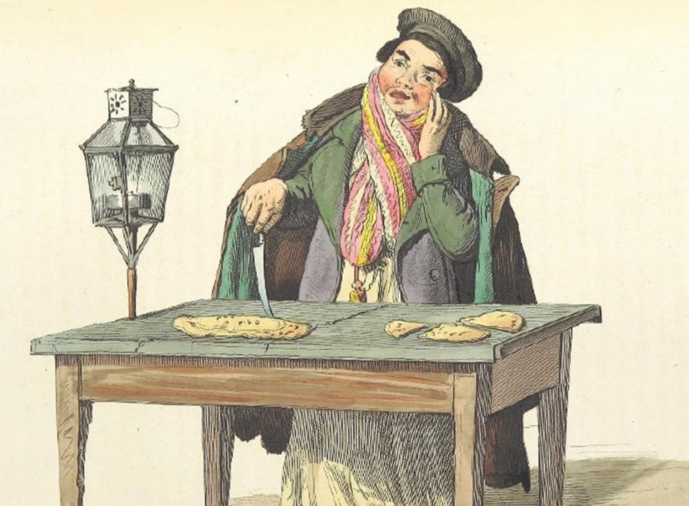 Image: An 1858 illustration of a pizzaiolo selling his wares (British Library / public domain).
