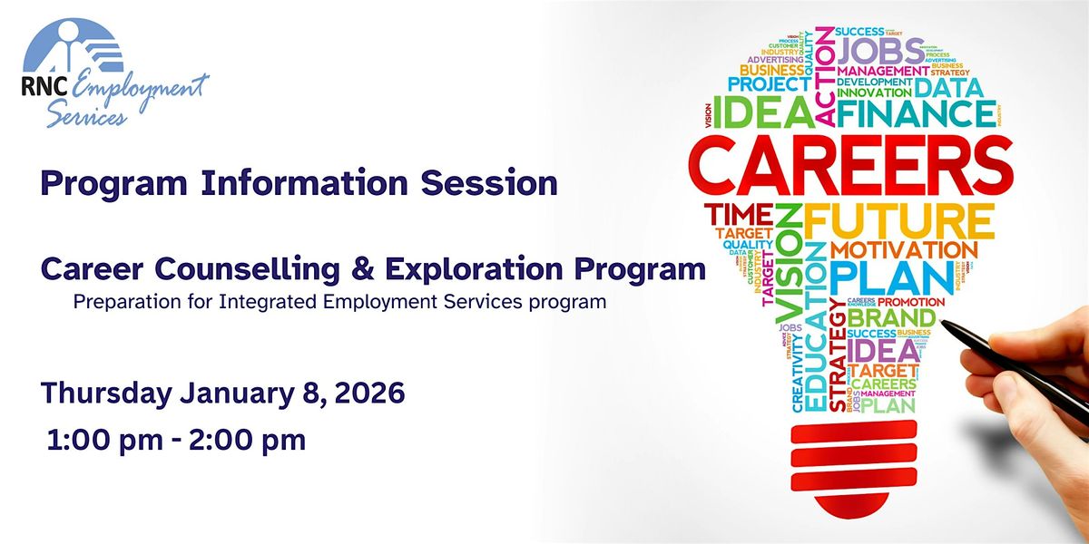RNC Employment Services flexible, no cost to you, part-time Career Counselling & Exploration Program can help you rebuild confidence, strengthen your skills, and prepare for meaningful employment.