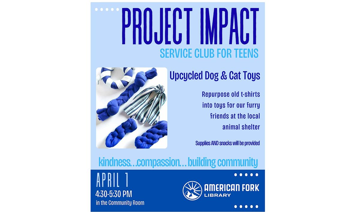 Spend an hour with other teens, building the community, putting kindness into the world, and offering compassion to others! Join us on Wednesday, April 1, at 4:30 PM at the American Fork Library for a fun service project...and, we WILL have snacks!