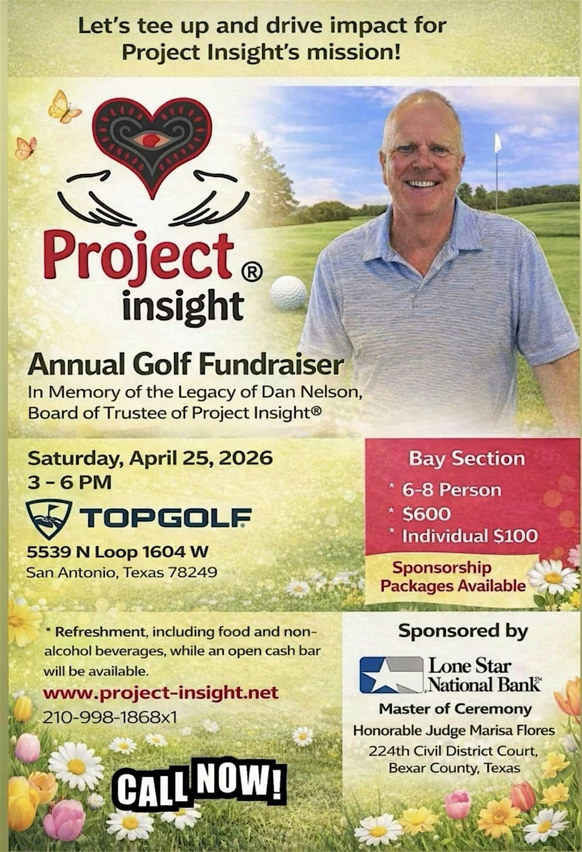 Project Insight® annual TopGolf Tournament with Art Show, Raffle Drawing, Hors d' oeuvres, golf bays are $600 donations, sponsors invited.