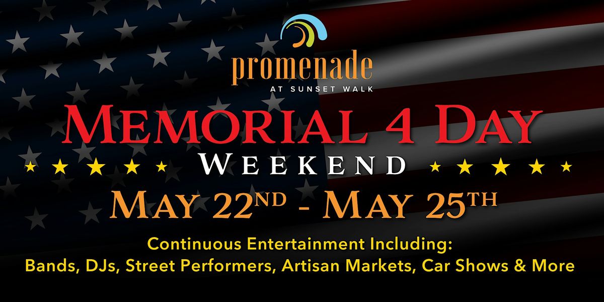 Join Promenade at Sunset Walk for our "Memorial 4 Day Weekend" as we honor the Men and Women of our Military that sacrificed their lives for our Country.