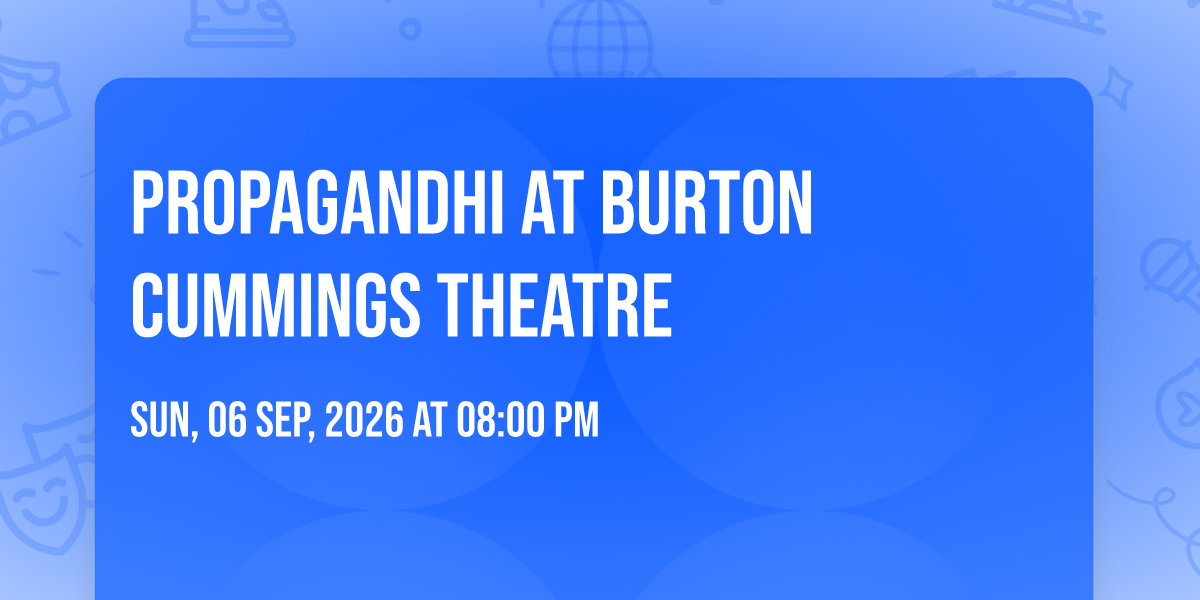 ✨ Embark on an extraordinary journey at Propagandhi at Burton Cummings Theatre, where every moment promises to be unforgettable! 🌟 Imagine of transforming Burton Cummings Theatre in the heart of Winnipeg, MB into a realm of endless possibilities. 📅 Join us on September 6th, 2026 at 08:00 PM for an experience that will challenge your imagination and exceed your expectations. 🎯 This carefully curated event combines the finest elements of entertainment, innovation, and community spirit. Whether you're an adventure seeker, culture enthusiast, or someone looking for unique experiences, this event offers something special for everyone. 🎊 Don't miss this chance to be part of something extraordinary!