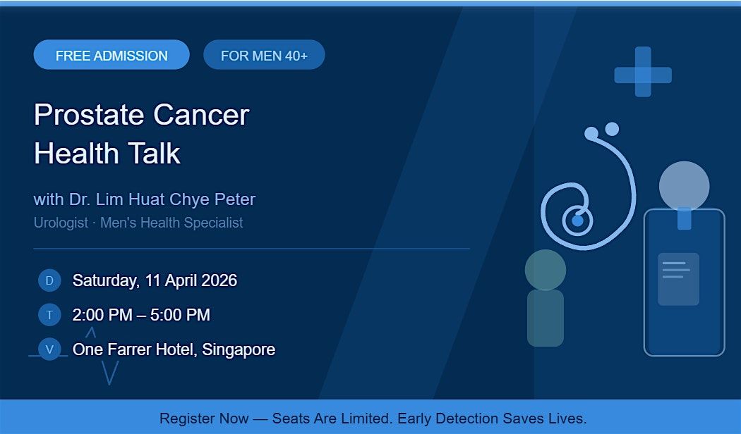 This April, take the most important step for your health and join us for a free, expert-led talk by Dr. Lim Huat Chye Peter β one of Singapore's most respected urologists and founder of the Society for Men's Health (Singapore).