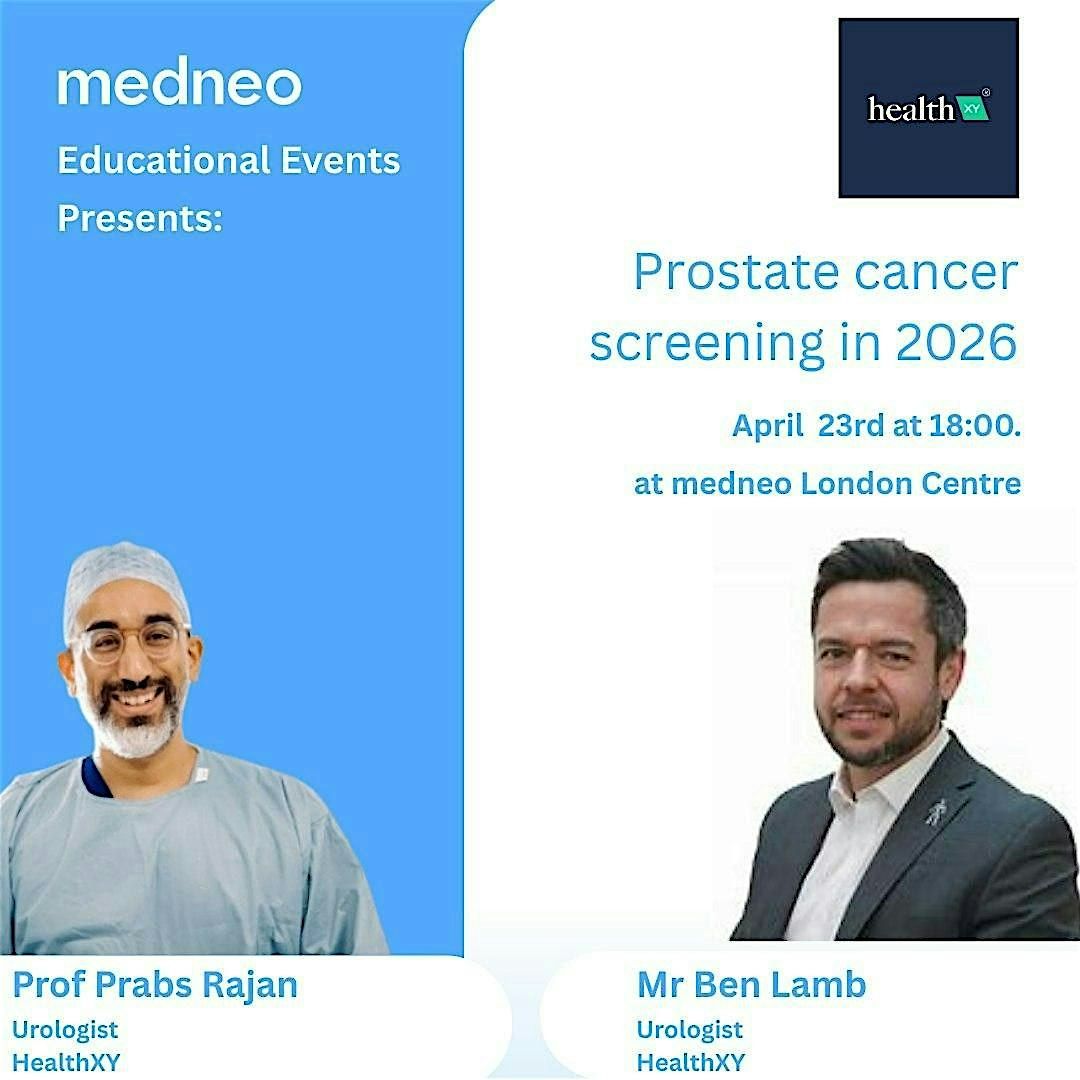 Join us at medneo Imaging Centre – MRI and Ultrasound on 23 April 2026 at 6:00pm (BST) for an informative and engaging evening focused on the early detection and prevention of prostate cancer.