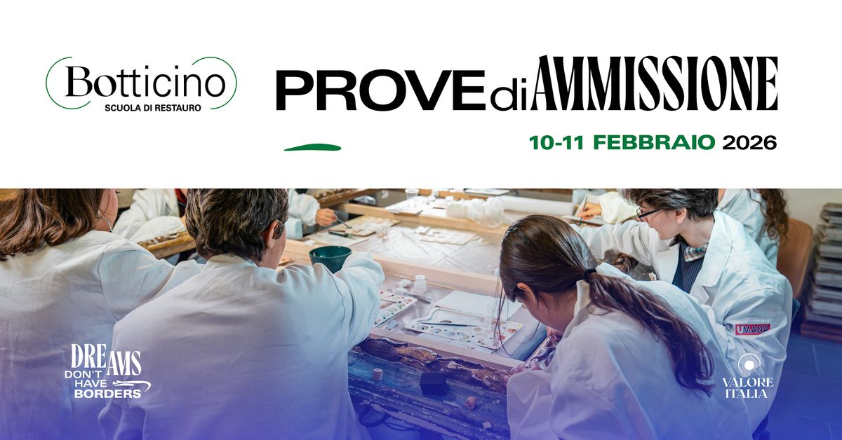La prima sessione di prove di ammissione per l'anno accademico 2026/27 è prevista per i giorni martedì 10 e mercoledì 11 febbraio 2026 alle ore 9.00 presso la sede della Scuola di Botticino - Valore Italia in MIND - Milano Innovation District. Il ritrovo è previsto per le ore 8.45.