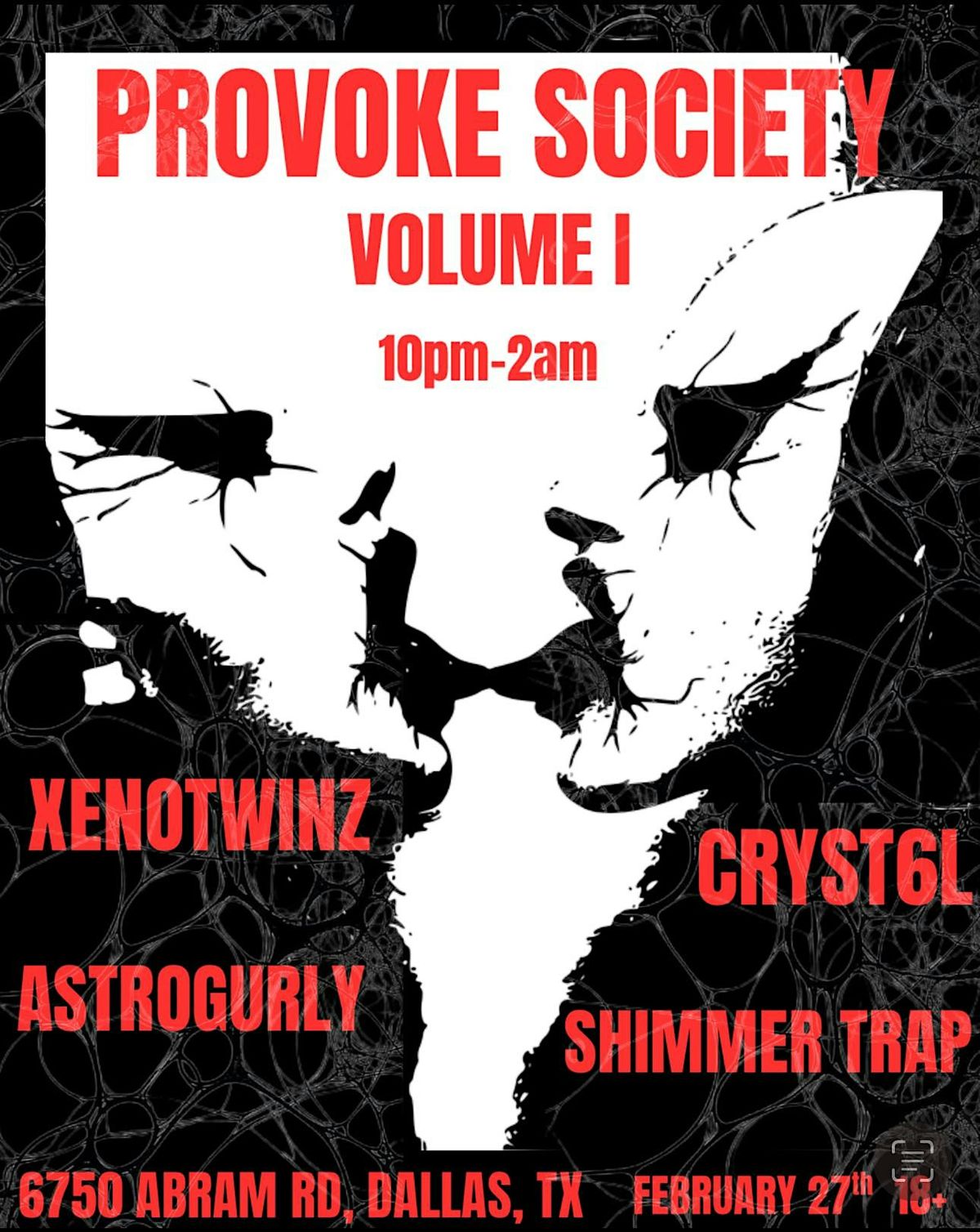 PROVOKE SOCIETY FEBRUARY 27TH | 18+ | 21+ TO DRINK XENOTWINZ CRYST6L ASTROGURLY SHIMMER TRAP