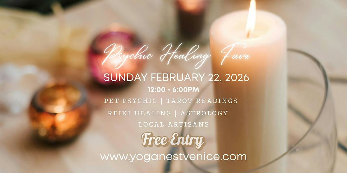 Welcome to the Psychic Healing Fair with Pet Communication - Tarot and Reiki Healing at Yoga Nest Venice! Join us on February 22, 2026 at 12:00 PM (Pacific Time) for a day filled with spiritual connections and healing vibes. Experience the magic of pet communication, tarot readings, astrology charts and the soothing energy of Reiki healing. This event is your opportunity to explore the mystical world and gain insight into your path. We will also have local artisans showcasing thier amazing art, jewelry and more so please don't miss out on this unique gathering of like-minded souls!