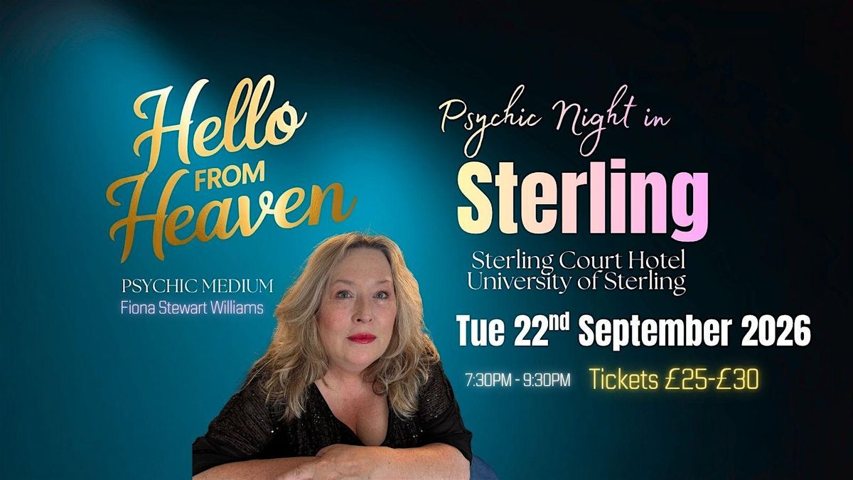 Be part of an evening of magical mediumship as Fiona Stewart Williams, International Psychic Medium brings her new amazing tour to Sterling.