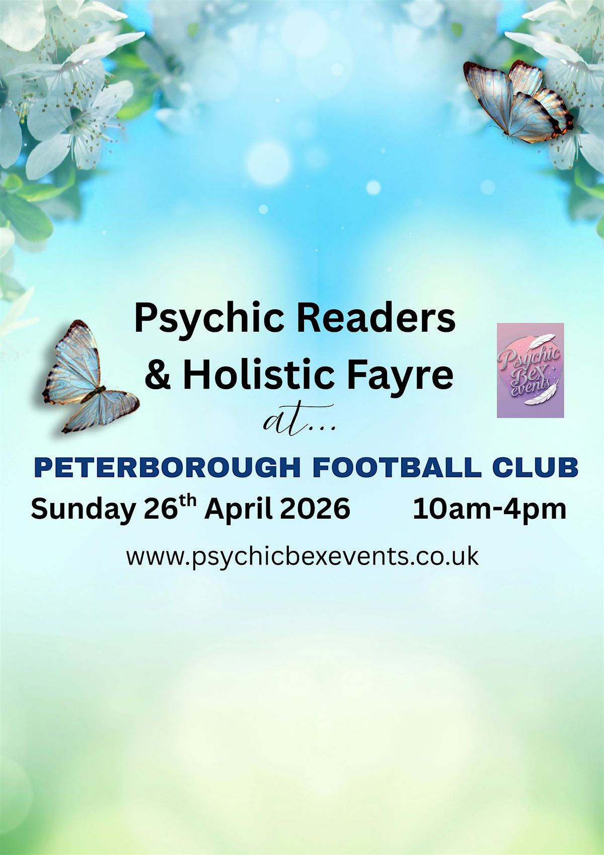 If you looking for a day of well-being and relaxation, then come and join us at our Psychic Readers & Holistic Fayre! At Weston Homes Stadium (Peterborough Football Club)on April 26, 2026 at 10:00 AM - 4.00PM. Immerse yourself into a welcoming atmosphere and a vibrant gathering of exhibitors offering a vast range of products and services, including crystals, jewellery & hand made items. Discover the latest trends in holistic therapies, alternative medicine, nutrition and more. Also chose from one of many differnt types of readings- including psychic mediums, Tarots, Coffee readings, intuitive art readings, animal communication readings, palm readings and more!