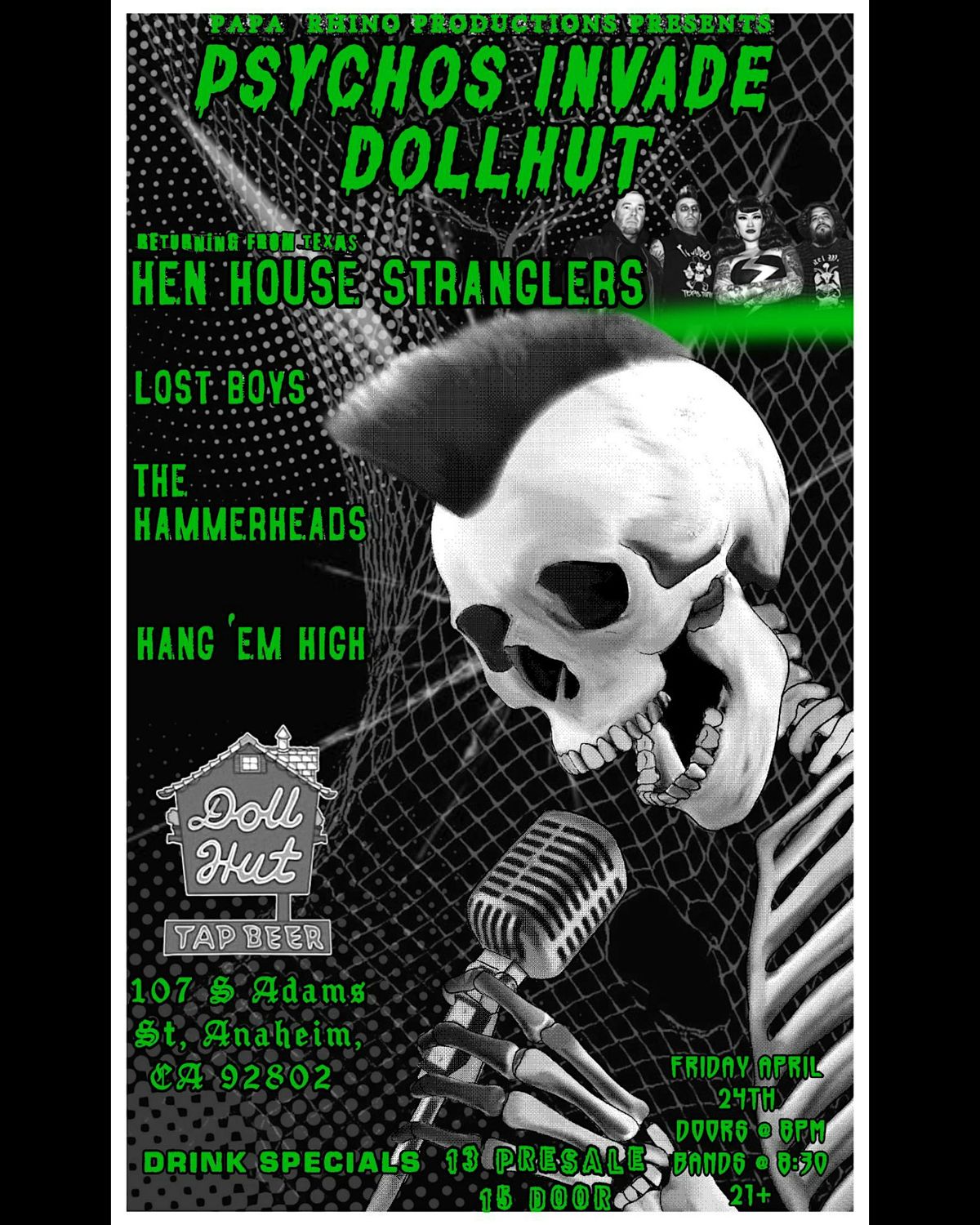 Returning all the way from The Lone Star state, Henhouse Stranglers! Join us for a killer psycho lineup Friday April 24th 8pm.