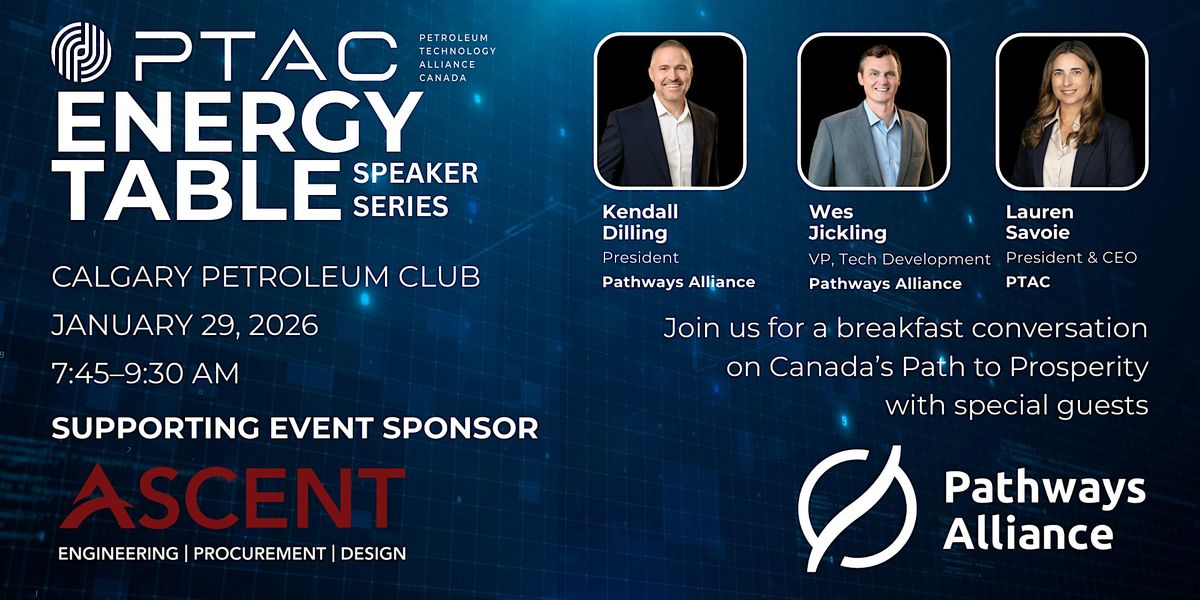 Join PTAC Petroleum Technology Alliance Canada & Pathways Alliance for breakfast and a forward-looking conversation on the closely watched developments in Canada’s energy and innovation landscape, focusing on Canada as an energy superpower.