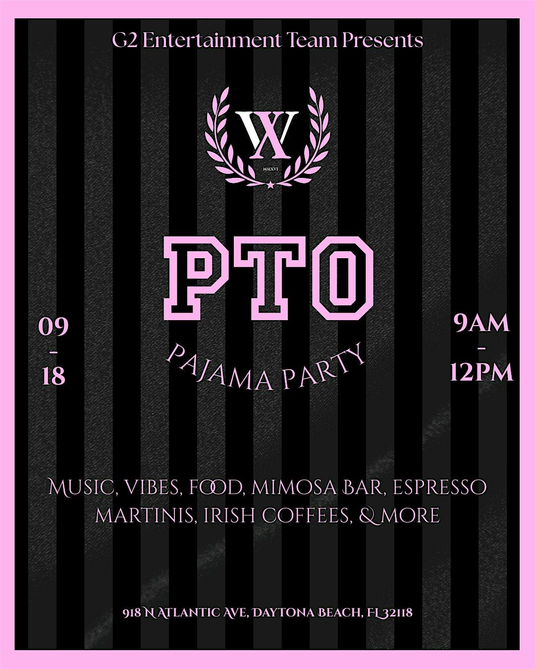 Catered breakfast (Metro Diner), mimosas, espresso martinis, and more all topped with a dose of a DJ giving the soundtrack to wake things up! Feel free to bring your own food or beverages.