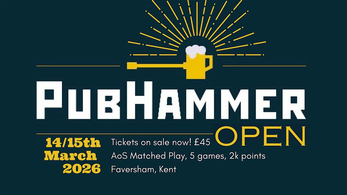 PubHammer Open is an age of Sigmar tournament with space for 20 players. The event will be run using Best Coast Pairings (BCP) and the submission deadline for lists is 9pm on the Wednesday before the event.