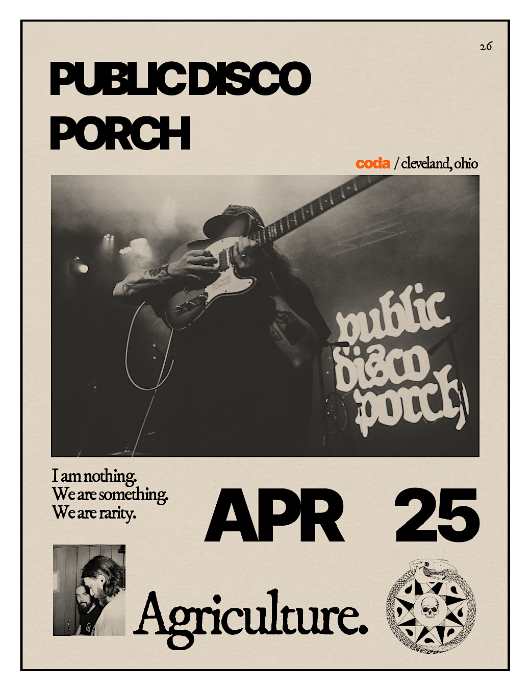 Ambitious as a rule, York ensemble Public Disco Porch devotes their music to the exploration of the soil that lies underneath the feet. The land, and the people that walked it previously at the forefront of it's narrative. The music itself acting as a rattling excavation of historical artifacts, culminating towards an unhinged spiritual. The catalog ripe with folk-metal riffage, entrancing percussion, muscled low-end, and just enough lashings of precise lead guitar.