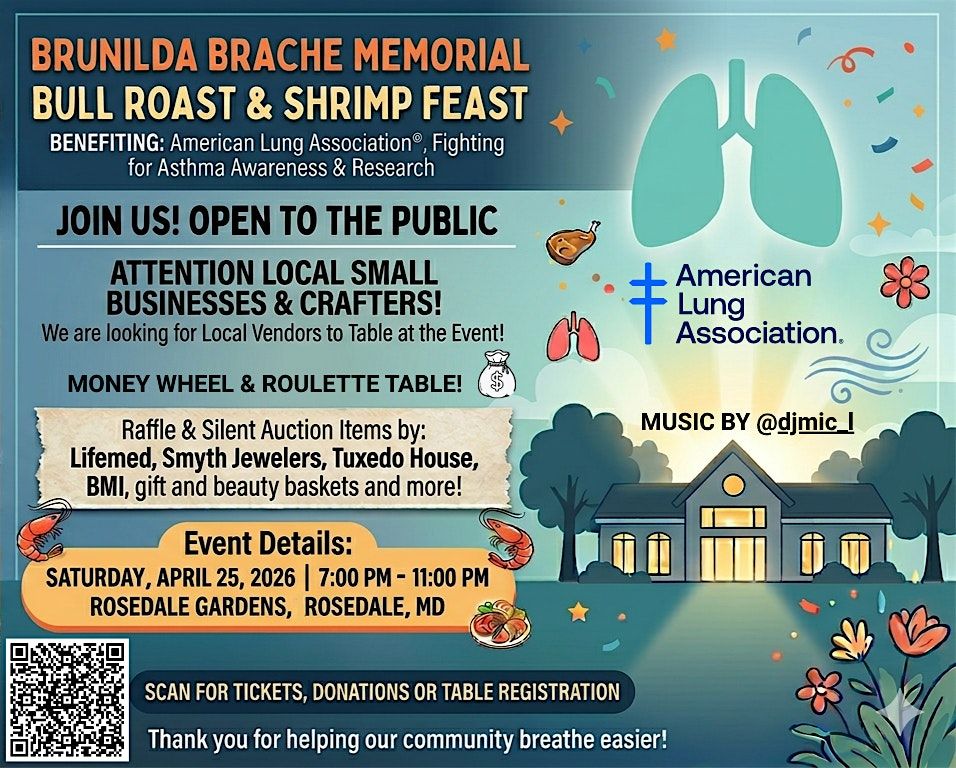 Join us for an evening of great food, community spirit, and a vital mission. This event honors the legacy of Brunilda Brache, who we lost far too soon to a sudden asthma attack. As we gather to celebrate her memory, we are raising essential funds for the American Lung Association® to support life-saving research, education, and advocacy.