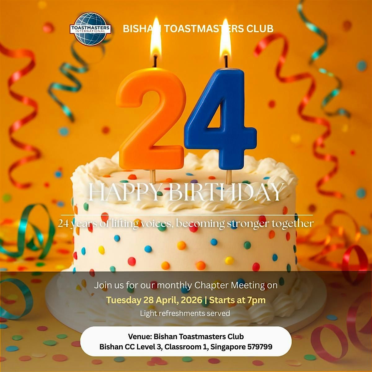 Join Bishan Toastmasters Club for a special milestone event as we celebrate 24 years of transforming voices into powerful stories.