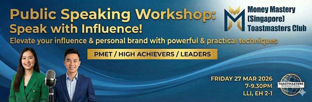 At this MMTMC Toastmasters workshop, âSpeak With Influence,â a veteran workshop trainer, Jeff Tan will show you how to influence quickly, easily, and confidently â without manipulation, pressure, or complicated techniques.