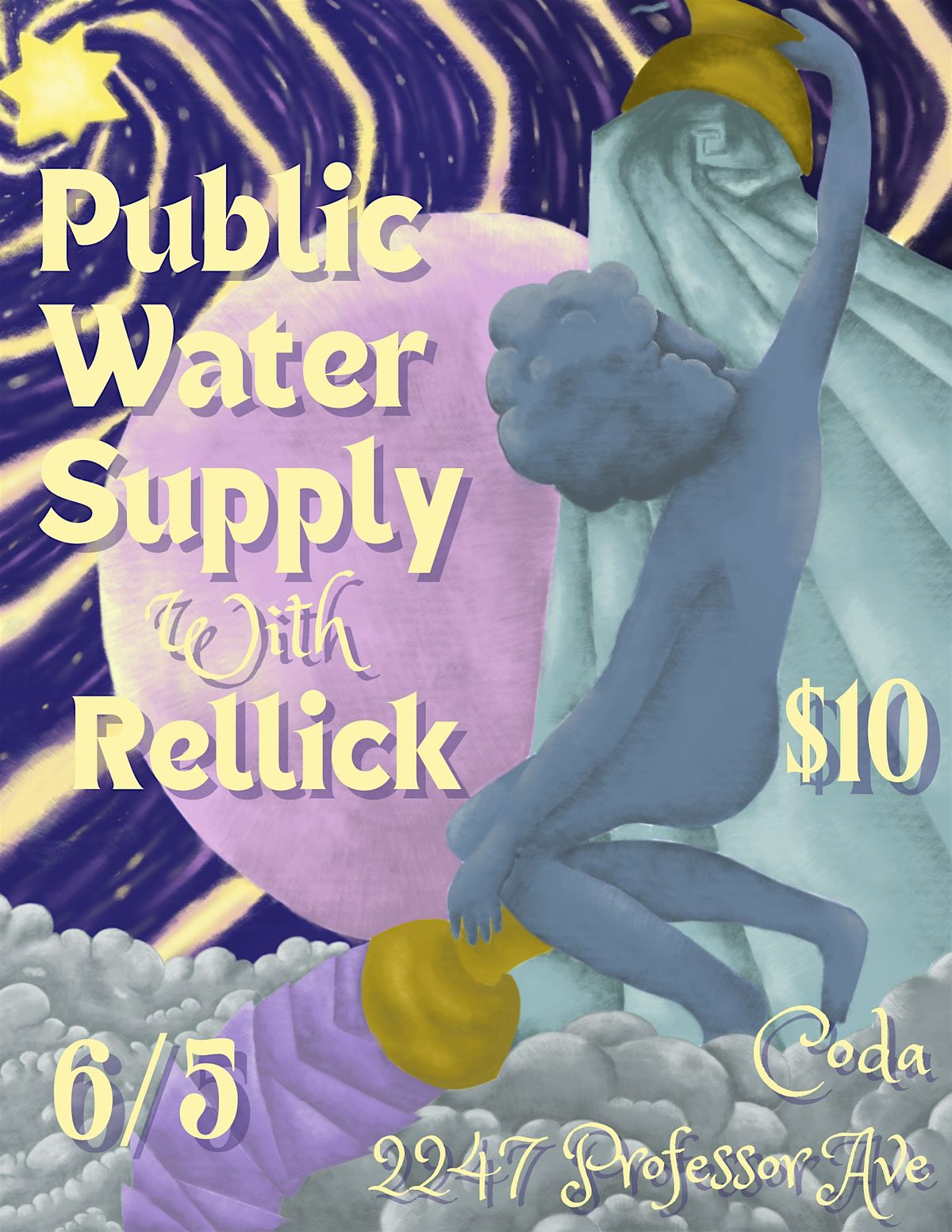 Rochester, NY — New York’s premier Alt. Country/ Indie Rock, PUBLIC WATER SUPPLY is exploding onto the national music scene with the release of its genre-bending debut album. This initial collection features twelve songs from the PWS artistic catalogue and is listed as a self-titled album. Released on all platforms on January 13, 2023, the album release party later that night culminated in a sold out show of 450+ fans at Fairport, New York’s Iron Smoke Distillery. The eclectic band consists of five university-trained musicians: Iggy Marino, frontman; Karis Gregory, Jr., lead guitar; Alex Brophy, team captain and bass; and Spencer Kornrish, bus driver and drums. Together, the group blends prodigious vocals, distinctive songwriting, and top-notch instrumentals. Their animated live shows, often sold out performances, are noted for their outrageously fun and frenzied fans known as “babies.” In 2022/2023, the adoring frenzy led to a successful touring schedule with PWS playing live venues throughout the Northeast. PWS will be rocking the stage of several summer music festivals, including the Lilac Festival & the Estival Festival.