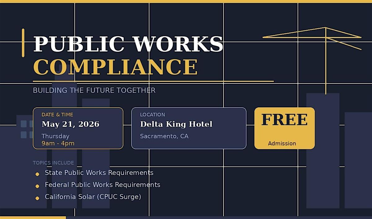 Join us in person for the Public Works Compliance event! Dive into the essentials of staying on top of regulations and best practices in public works. Whether you're new or experienced, this is a great chance to connect, learn, and ask questions in a laid-back setting. Don't miss out on this opportunity to boost your compliance knowledge and network with peers. See you there!