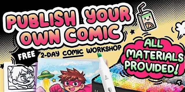 From Character to comic in two days. Design your own character, write your story, and create a finished comic. Your work will be printed and showcased at the Library Comic Festival on 2nd May. You will be guided through character design, story building, cover design, typography.