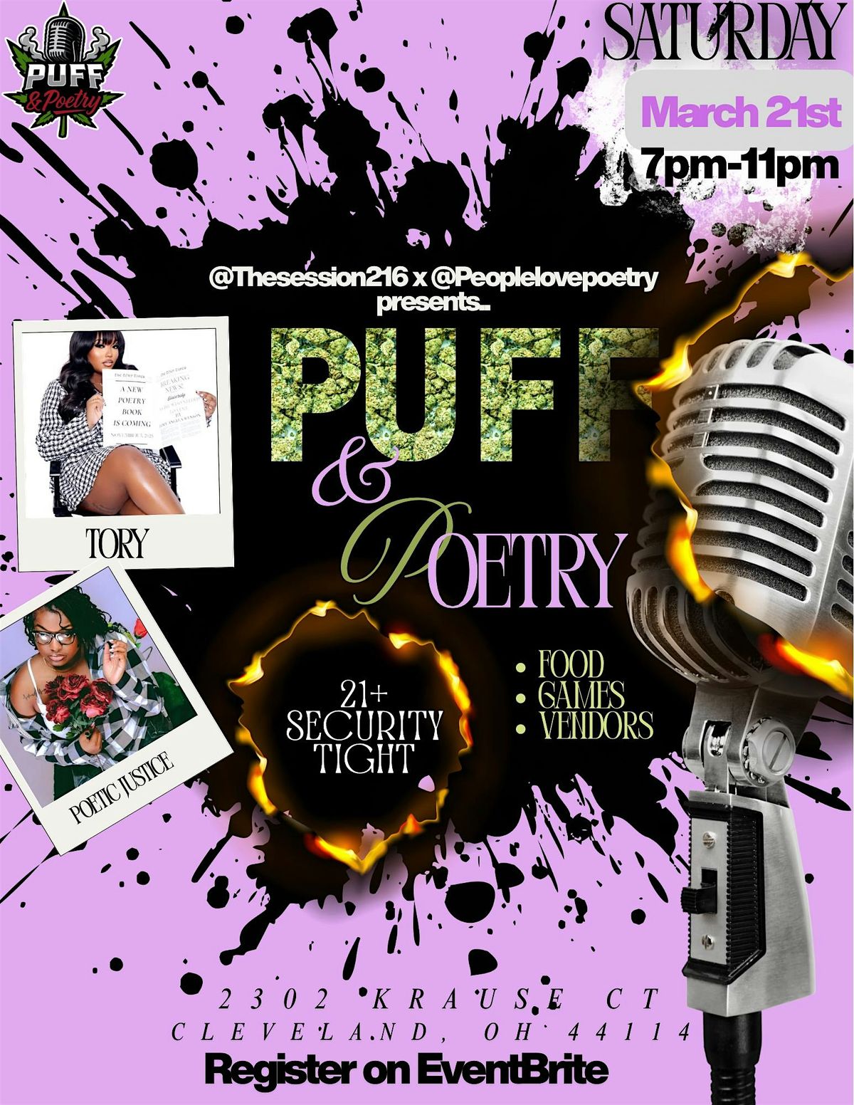 Puff & Poetry is open mic night meets 4-20 energy! Where the air is hazy, the crowd is vibing, and the mic is on fire!