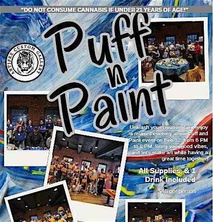 Get ready for a chill night of creativity at PUFF N PAINT FEBRUARY! Join us in person for some laid-back vibes, cool company, and painting fun. Whether you’re a pro or just looking to unwind with a brush in hand, this event is all about good times and bold colors. Don't miss out on this awesome chance to mix art with relaxation. Bring your friends and let's make some masterpieces together!