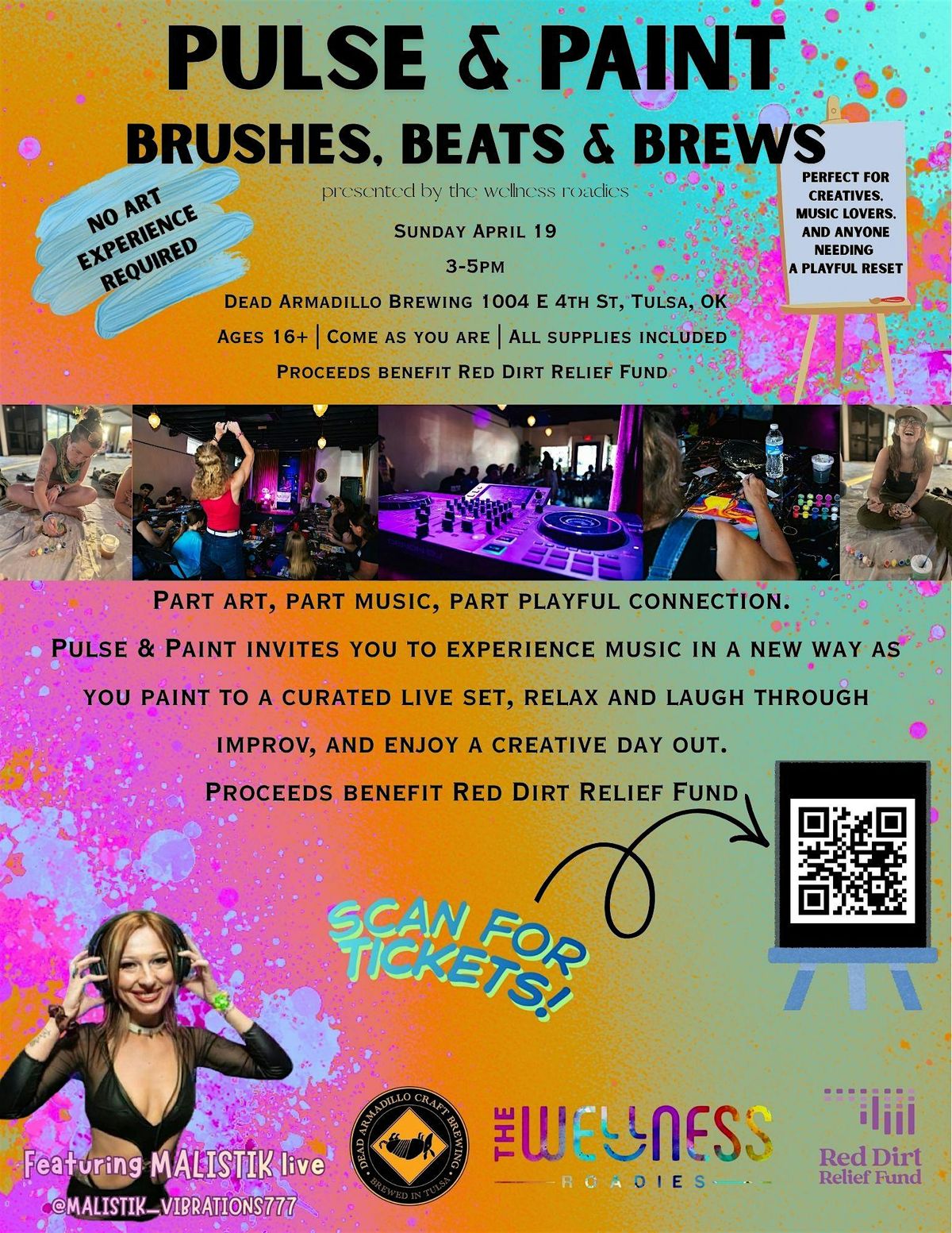 Come sip, snack, paint, and vibe with us at Dead Armadillo Brewery for a special Pulse & Paint benefiting Red Dirt Relief Fund.