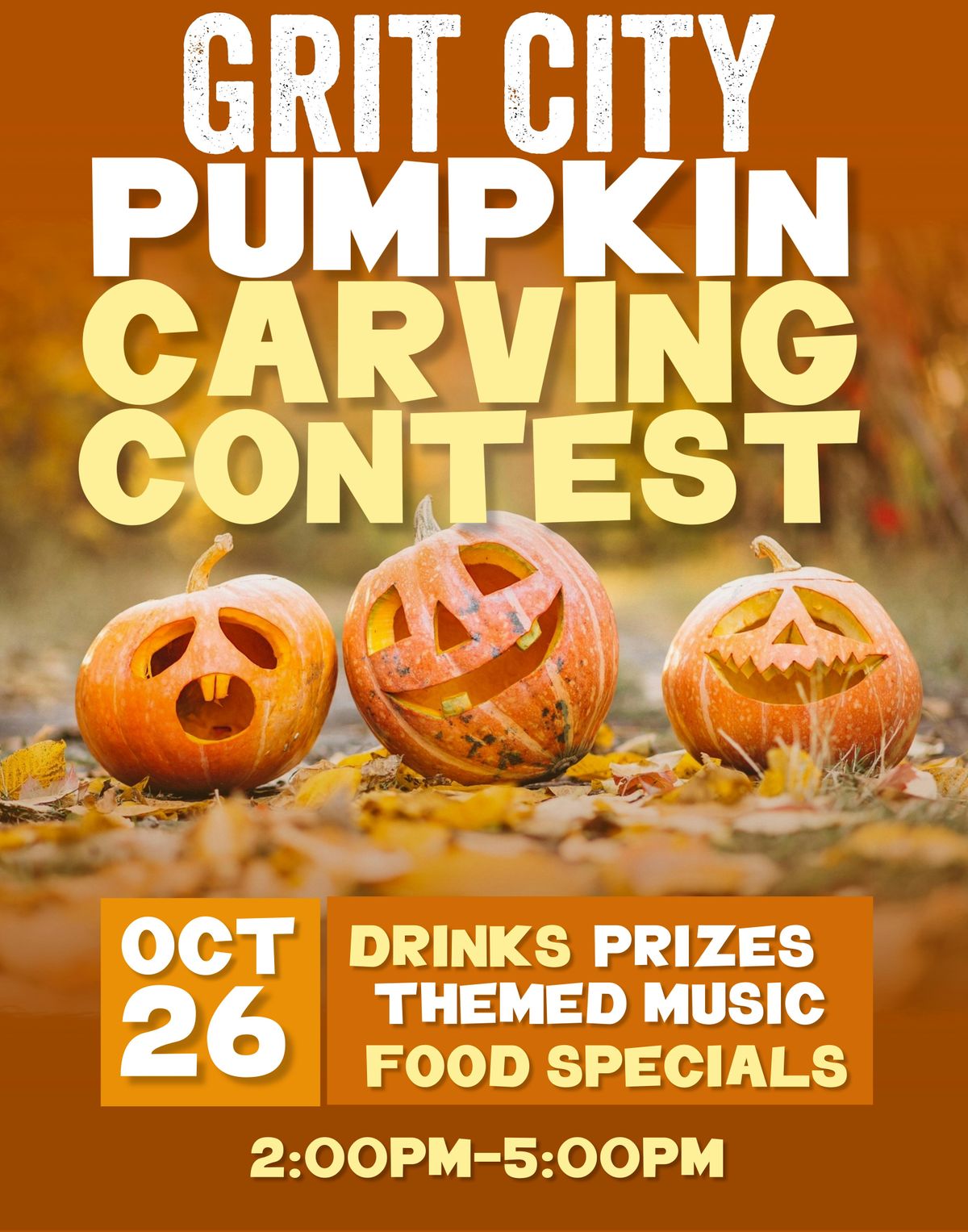 Bring your best carving ideas down to Grit City and carve out your own pumpkin for your chance to win a $100 Grit City Gift Card & bragging rights!