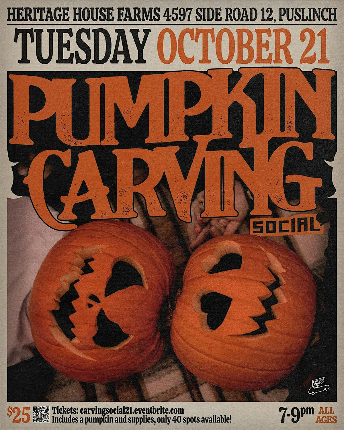 Tickets include your pumpkin to take home and use of necessary tools and supplies for carving. Only 40 spots available!