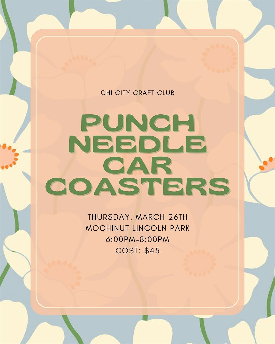 Get ready for a fun, hands-on in-person workshop where you’ll learn the cool craft of punch needle! Make your own unique car coaster to keep your ride stylish and cozy. Perfect for beginners and craft lovers alike. Come hang out, create, and take home a crafty piece that’s all you!