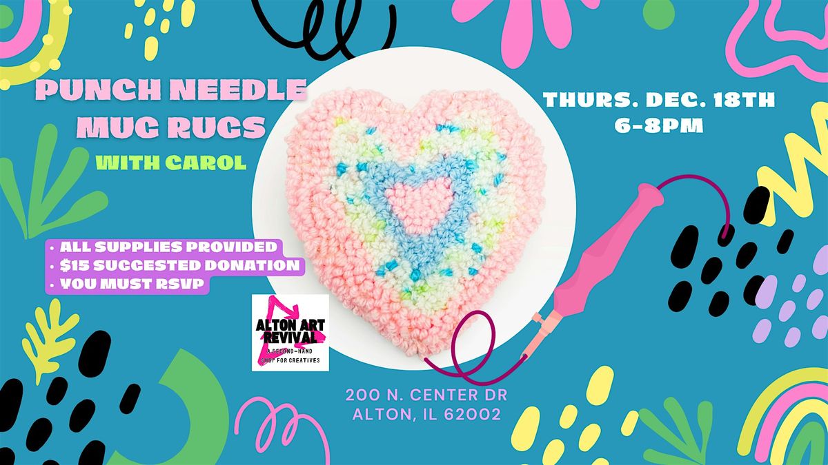 Join us for a hands-on workshop where you’ll design and make your own punch needle mug rug—perfect for your morning coffee, a sweet gift, or a little handmade décor to love all year long. This class is beginner-friendly and a great way to try a new fiber art technique in a relaxed, welcoming space.