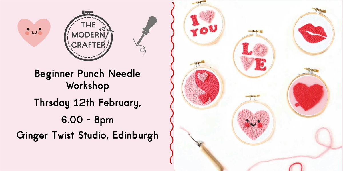 Join Rachel of The Modern Crafter, book author of Punch Needle 15 Contemporary Projects in person for a fun and cozy Punch Needle workshop this Valentines/Galentines season! Whether you're crafting for your loved one or your besties, this session at the wonderful Ginger Twist Yarn and Haberdashery Studio in Edinburgh is perfect to learn and create unique textile art. No experience needed—just bring your creativity and good vibes. Let's stitch up some love and friendship together!