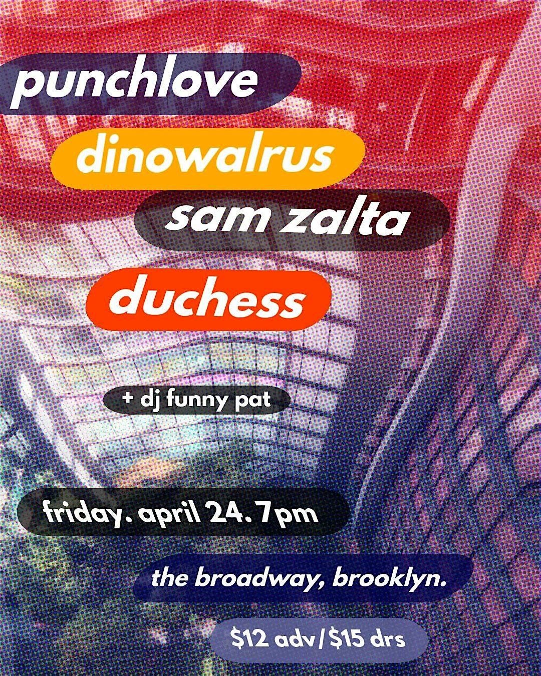 Punchlove is the experimental art rock vision of multi-instrumentalists Jillian Olesen, Joey Machina, Ian Lange-McPherson, David Moberg, and visual artist viz_wel. Quietly evolving from Olesen’s COVID-19 bedroom project into a synaesthetic, headlining live phenom, the Brooklyn-based five-piece blends densely layered, emotionally serrated noise-pop with immersive performance and production—delivering an immense, original, and digitally inflected brand of modern alternative rock.