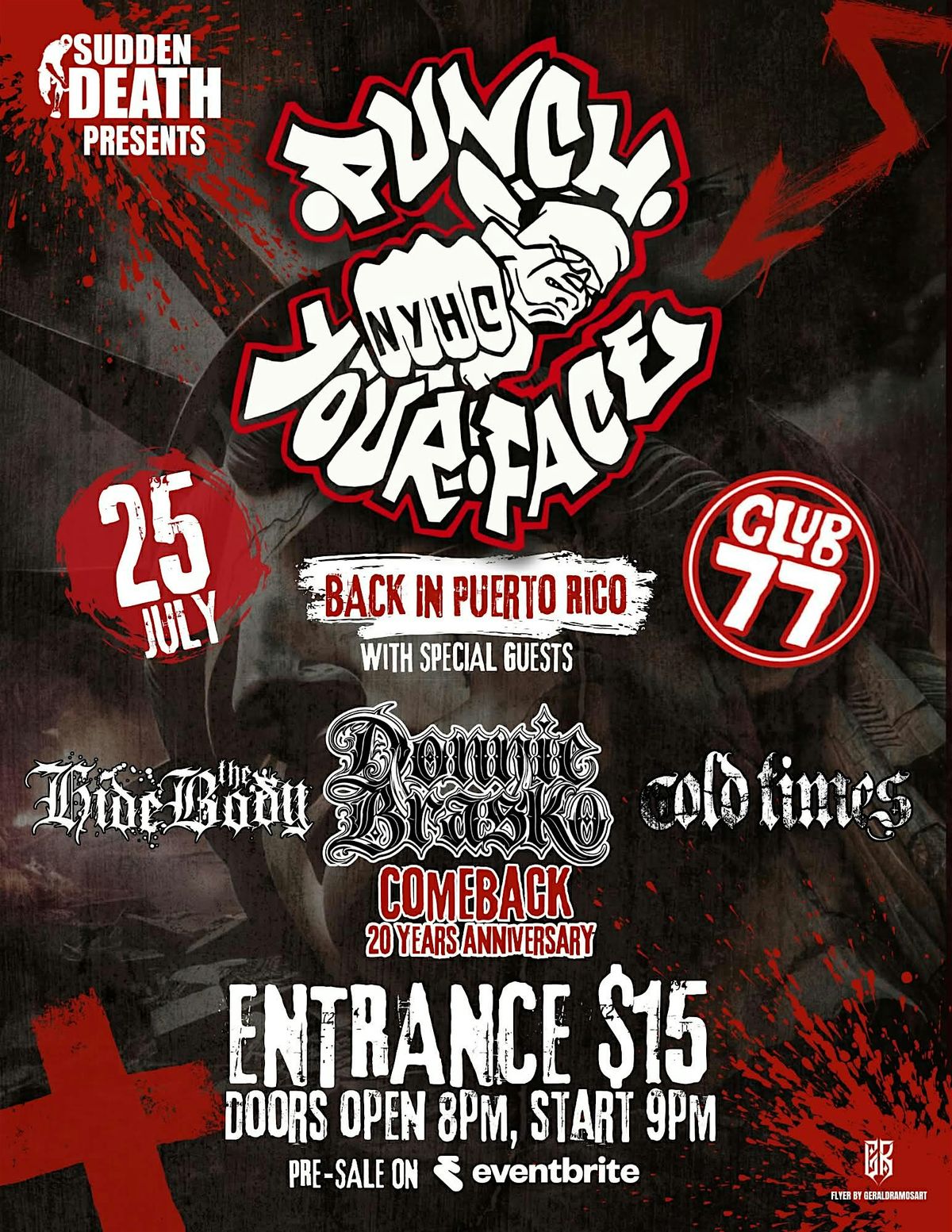 Punchyourface, una banda de NYHC con mas de 20 años de carrera regresa a Puerto Rico. Con ellos Hide The Body y Cold Times