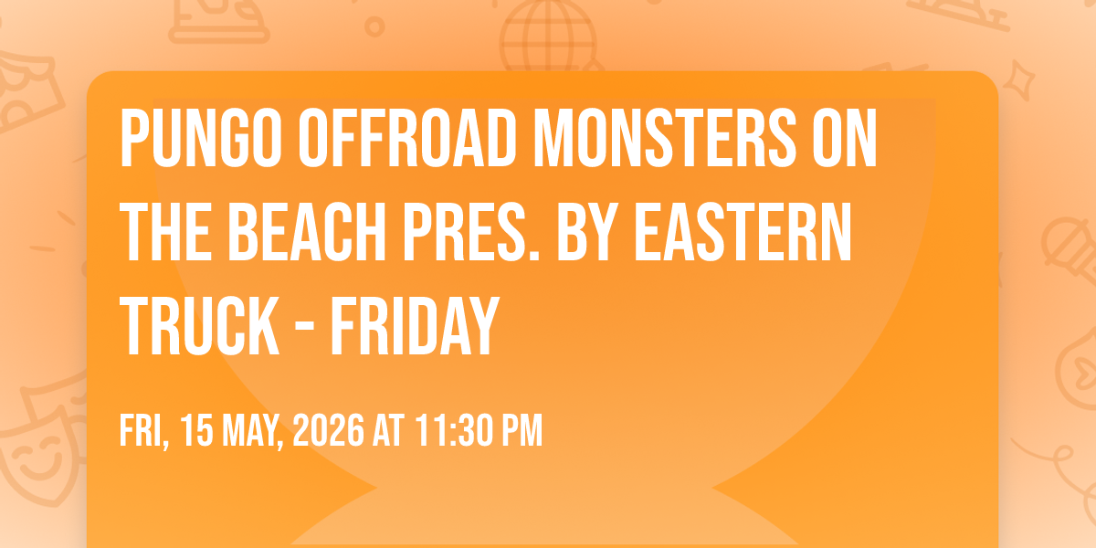 📍 Location: 36.8338, -75.9711✨ Enter a world of endless possibilities at Pungo Offroad Monsters On The Beach pres. by Eastern Truck - FRIDAY, where every moment tells a story! 🏛️ The stunning 5th Street Beach Stage in vibrant Virginia Beach, VA transforms into a realm of wonder on May 15th, 2026 at 11:30 PM. 🌟 They have crafted an experience that goes beyond the ordinary, combining elements of surprise, delight, and pure entertainment. Every detail has been thoughtfully considered to ensure your journey with us is nothing short of extraordinary. 🎯 Join fellow adventure seekers and memory makers in this celebration of imagination and innovation. 🎊 Reserve your spot today and be part of something truly special!